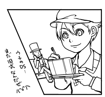 ちょっと苦笑いで見ているレイトン教授がいらっしゃいました。